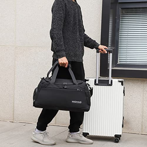 - WATER-RESISTANT DUFFLE BAG — No more worrying about your luggage getting wet when you’re going to the gym or travelling on a rainy day. The thick water&scratch resistant fabric keeps your belongings dry and stable during those cold rainy weathers.