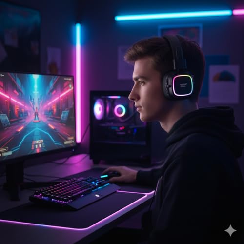 Generic - هيدفون بلوتوث لاسلكية ستيريو بصوت قوي وباس عميق - تصميم خفيف وقابل للطي مع اضاءة LED ملونة - بطارية 250 مللي امبير وتشغيل حتى 8 ساعات - موديل LS-258