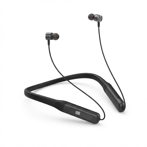 Generic - سماعة رقبة بلوتوث لاسلكية بشاشة LED رقمية - بطارية 400mAh وقت تشغيل 40 ساعة - مدى اتصال لاسلكي حتى 10 متر - صوت عالي الدقة للرياضة والمكالمات - موديل N03 (اسود)