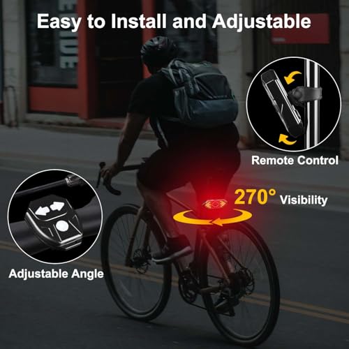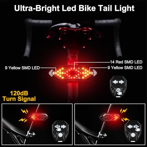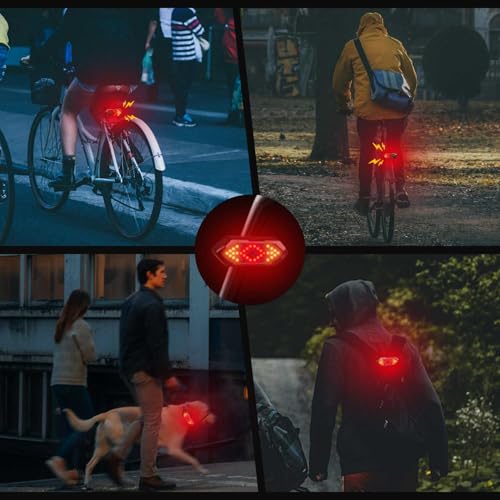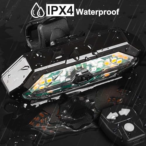 - 【Ultra-Bright LED Bike Lights】 The characteristic USB rechargeable 32 LED SMD lights with a maximum of 180 lumens to provide excellent lighting. Just turn on the left/right turn signals through the wireless remote control and attract the attention of drivers, ensure safety for the cyclist while driving. It's A perfect arrows electric scooter bike for night riding. With a strong signal range of up to 5m, this bike light allows you to adapt to different riding conditions and ensures you are actually visible to nearby vehicles.
