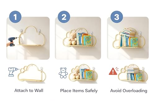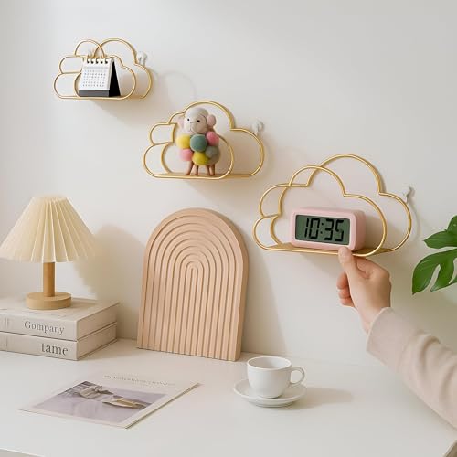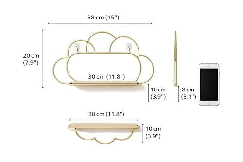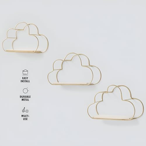 - تتميز هذه الأرفف العائمة على شكل سحابة بإطار معدني ذهبي فاخر مع قاعدة خشبية صلبة، مما يوفر مظهرًا جماليًا دافئًا وأنيقًا مثاليًا لغرف المعيشة أو غرف النوم أو المكاتب المنزلية - مما يحول مساحة الحائط الفارغة إلى منطقة عرض أنيقة للصور والحلي والديكور.
