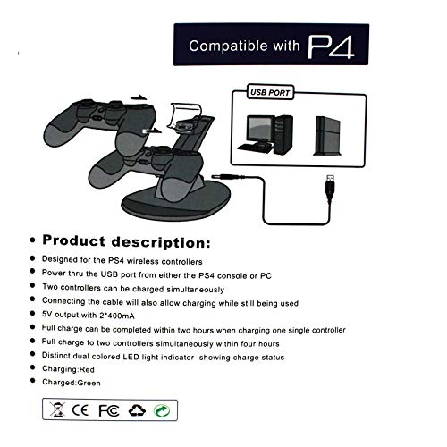 Other - محطة شحن مزدوجة مزودة بمنفذي يو اس بي وستاند وضوء ال اي دي لوحدات التحكم دوال شوك الخاصة بمشغل العاب الفيديو بلاي ستيشن 4، أحمر