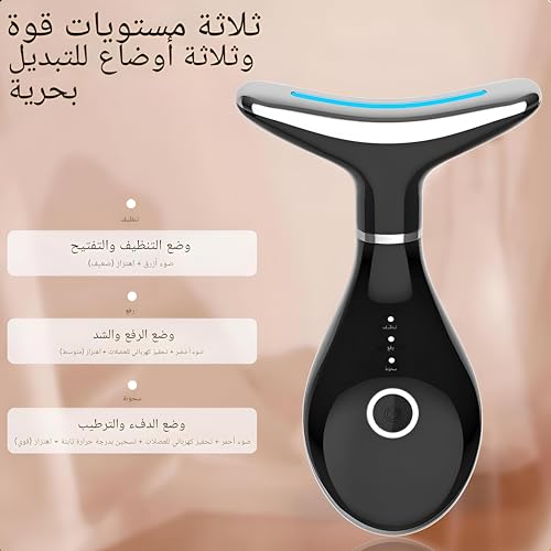 Generic - جهاز كهربائي لتحفيز الوجه بإضاءة ليد دقيق لتقليل التجاعيد وشد البشرة والعناية بالعين، لون أسود