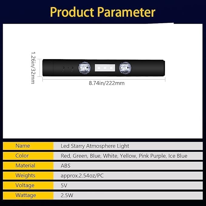 - 7 Colors LED Laser Light Bulb Sound Control - Interior Lighting Accessories for Car Home Office - USB Rechargeable Under Sound Controllers, Music Sync, Universal Fit