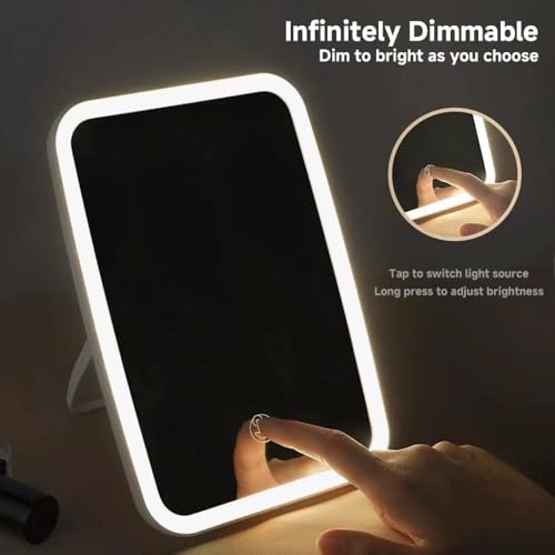 SNS SECRET NAILS SYSTEM - LED Lighted Makeup Mirror with Touch Control, Adjustable Brightness Vanity Mirror with Stand, Portable Tabletop Cosmetic Mirror for Makeup, Skincare and Grooming