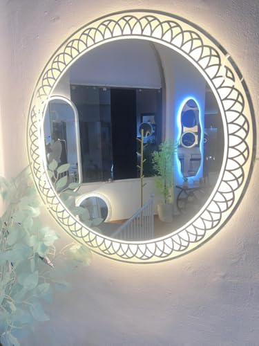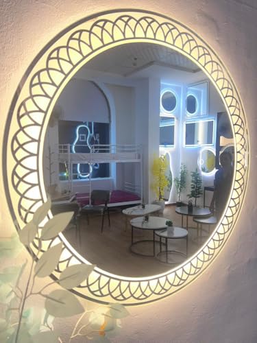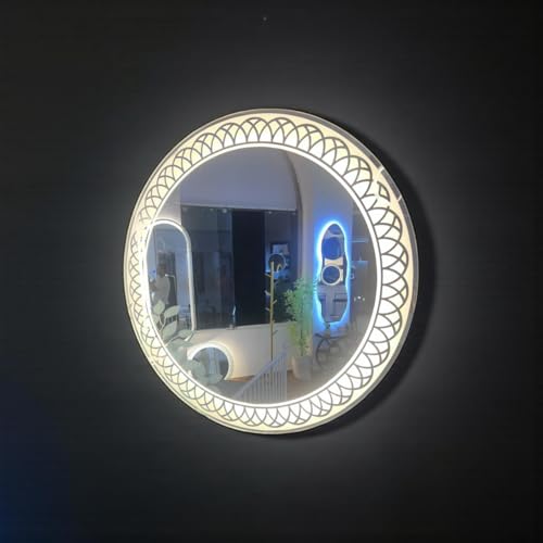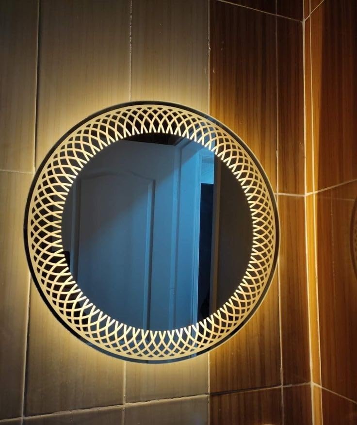 Generic - مرآة دائرية مضيئة LED – 70 سم – إضاءة خلفية باللون الأصفر – مرآة حائط ديكورية عصرية للحمام أو غرفة النوم أو غرفة المعيشة – تصميم أنيق حديث لديكور المنزل