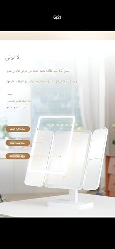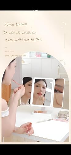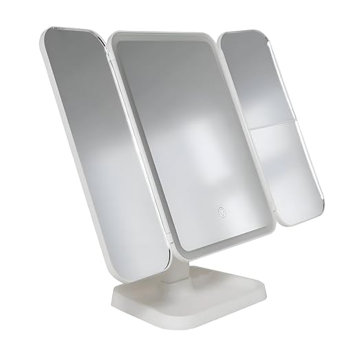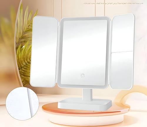 Generic - LED Lit Folding Vanity Mirror with Touch Dimmer and High-Clarity Surface - Modern White Aesthetic Three-Fold Design