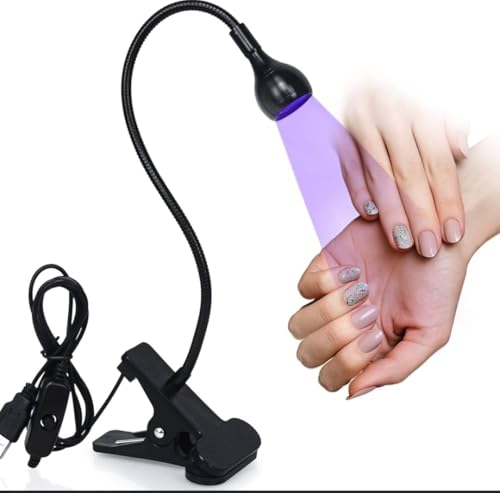 - ١) مصباح يو في: مصباح ليد مع ضوء بنفسجي مثالي لتجفيف طلاء الأظافر، مع ذراع مرن قابل للتعديل بالكامل