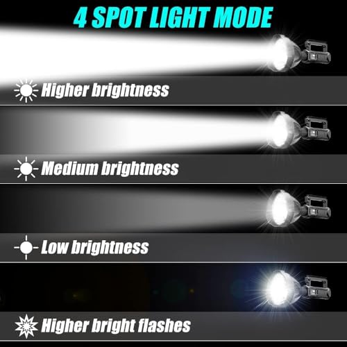 - 4 Light Modes:Handheld Searchlight are equipped with 4 lighting modes:High/Medium/Low/Strobe brightness, to meet your different lighting needs.