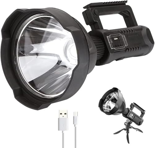 Gliroy - Led Rechargeable Flashlight,Super Bright 90000 Lumen Searchlight with 4 Lighting Modes,Handheld Spotlight with Foldable Tripod for Camping,Hiking
