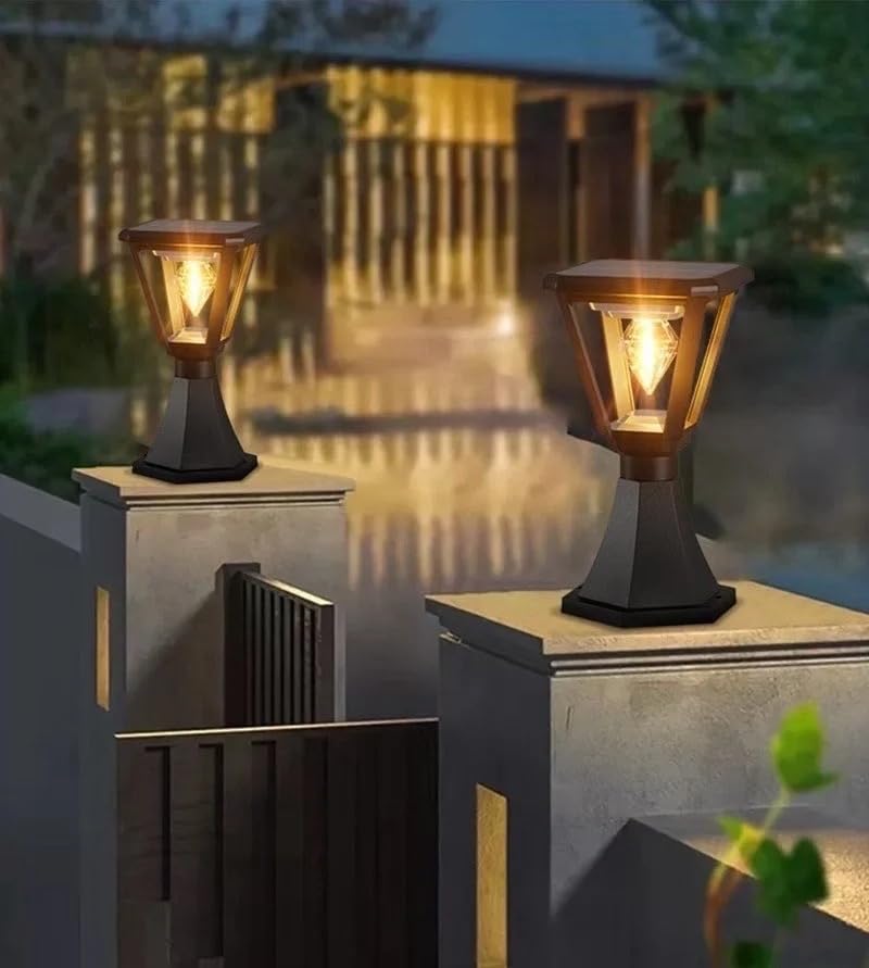 - 1) Classic design: Elegant pole design garden lamp with black frame and clear glass, add elegance to your outdoor areas