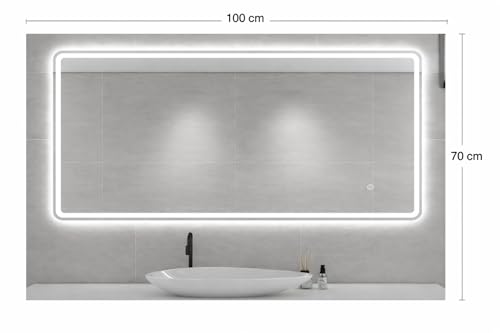 Generic - LED Touch Bathroom Mirror, 100x70cm, 6mm, LED Ambient Light, Rectangular, with Touch Button