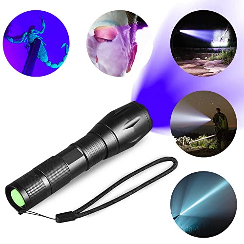 UNKNOWN - كشاف يدوي ليد بالأشعة فوق البنفسجية 2 في 1، كشاف عالي السطوح مقاوم للماء للكشف عن ملابس الحيوانات الأليفة والطعام واكتشاف الفطريات وصيد الأسماك ليلًا والسفر وبق الفراش، لون أسود