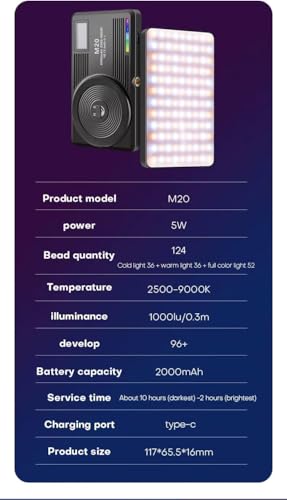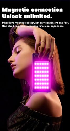 - 124 High-Brightness LEDs: Even and powerful lighting for clear, professional results 2500–9000K Adjustable Color Temperature: Full control over warm, neutral, and cool lighting RGB Lighting Modes: Create creative moods and attractive video backgrounds 3000mAh Rechargeable Battery: Long-lasting performance for daily and outdoor use Magnetic Design with Clip Mount: Easy attachment to cameras, phones, or metal surfaces