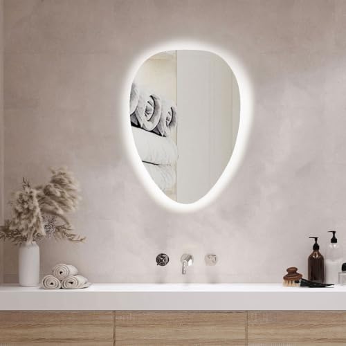 - ELEGANT DESIGN: Oval-shaped wall-mounted mirror measuring 49 × 58 cm with integrated LED warm lighting that creates a soft ambient glow around the perimeter for a modern, sophisticated look