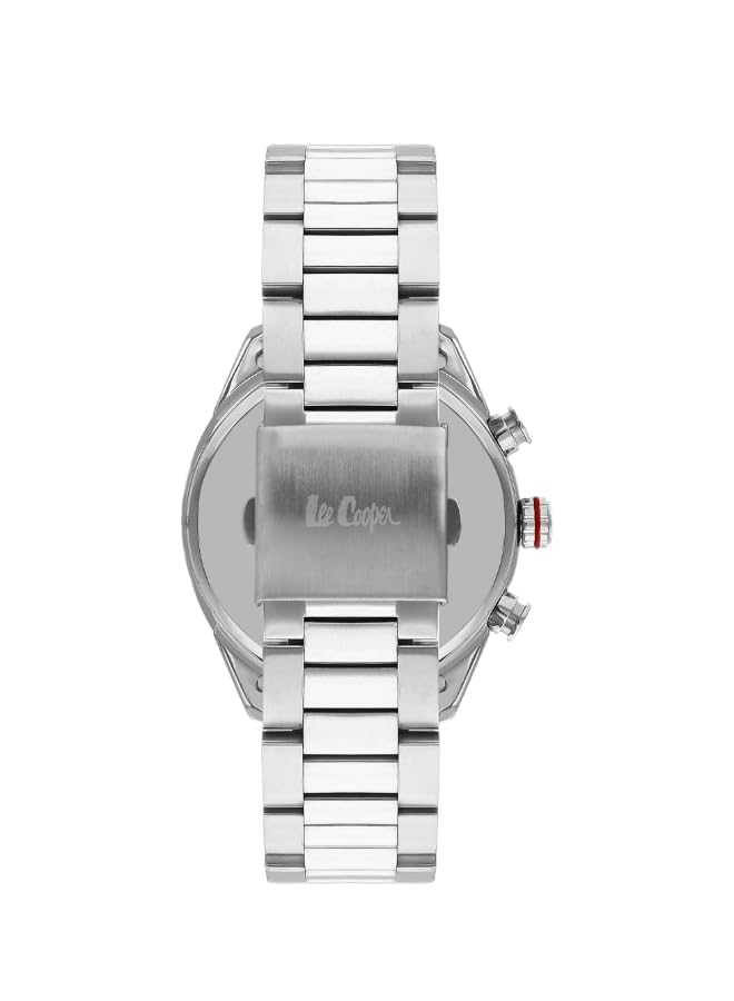 Lee Cooper - لي كوبر ساعة بحركة VX9NE1 للرجال، شاشة متعددة الوظائف وسوار معدني - LC07834.350، فضي