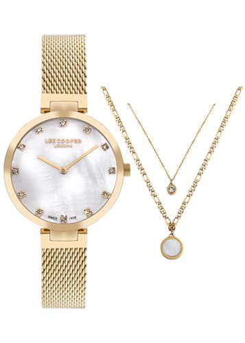 Lee Cooper - LEE COOPER Women’s Analog White Mop Dial Watch With Gift set necklace- LC07806.120