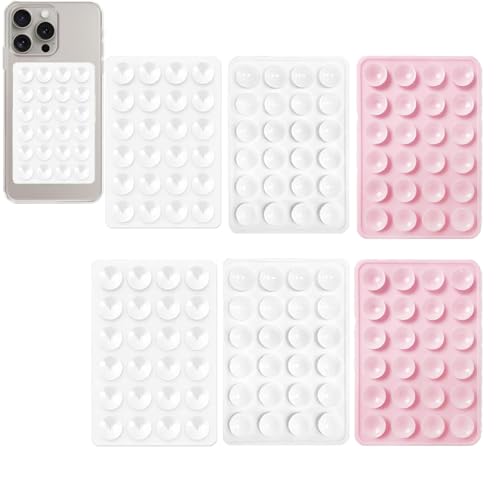 Leeneen - حامل لجراب موبايل بظهر لاصق بالشفط، قاعدة لاصقة غير قابلة للانزلاق من السيليكون، مناسب الموبايل ومزودات الطاقة في السيارة من لينين، 6 قطع، أبيض ووردي فاتح وشفاف