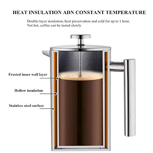 leesuo - leesuo Stainless Steel French Press Coffee Maker - Double Walled 34oz Espresso & Tea Maker - 100% 18/10 Stainless Steel,Rust-Free, Dishwasher Safe (1000ML)