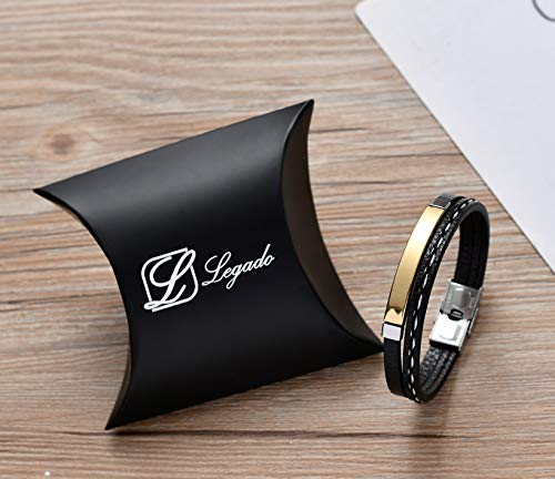 LEGADO - LEGADO Men's Bracelet PU Leather and Stainless Steel Viking Black Mix with Ring Earring Necklace Pendant or Anklet, Faux leather