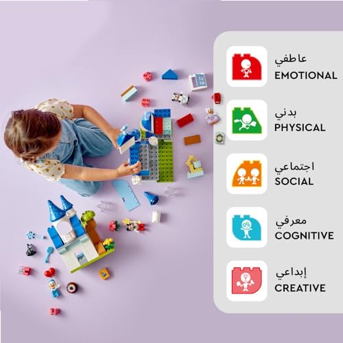- Features a LEGO DUPLO | Disney Magical Castle buildable toy for kids aged 3 plus and 5 LEGO DUPLO Mickey Mouse and Friends figures