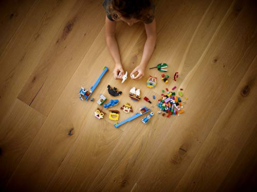 - هناك 12 لعبة ليغو لصنع - قلعة ووجه مضحك وأميرة وخفاش وديك ومحتال وسفينة قراصنة وبومة وشبح وطاحونة هواء وسمك قرش وديناصور - بالإضافة إلى مكعبات إضافية للأطفال لبناء ألعابهم الخاصة.
