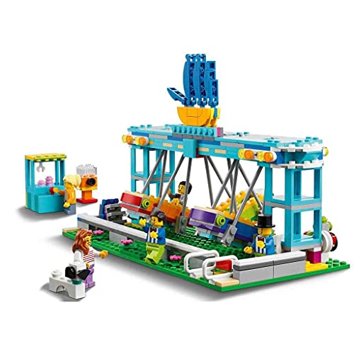- تتميز مجموعة أرض المعارض ليجو هذه بنموذج 3 في 1 مع عجلة فيريس تتحول إلى سيارة ممتصة للصدمات أو ركوب قارب متأرجح، واحدة تلو الأخرى