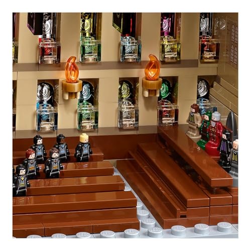 - Hogwarts Castle features the Great Hall with buildable ‘stained glass windows', house banners, benches, tables, flaming torches and moving staircases