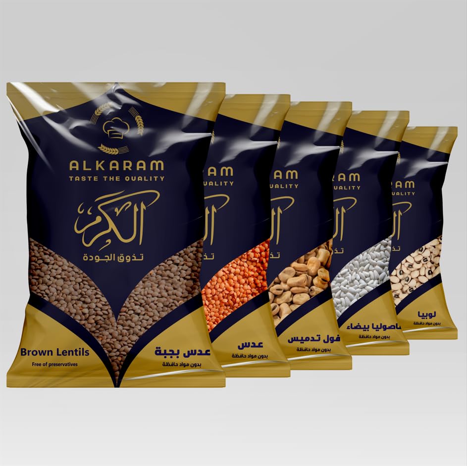 ALKARAM - Legumes Mixed Lentils Lupia 500gm - White Beans 500gm - Tamis Beans 2 Kg - Yellow Lentils 500 gm - Bajba Lentils 500 gm