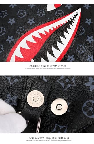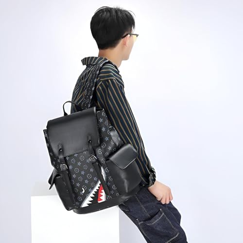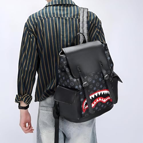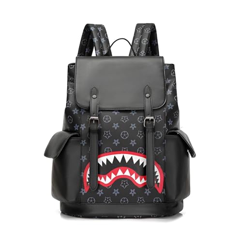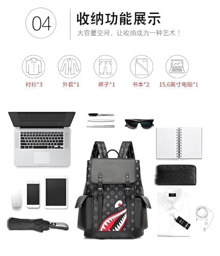 Generic - شنطة ظهر ترفيهية - شنطة كمبيوتر انيقة على شكل سمكة قرش مع جزء داخلي واسع، تتميز بأنماط منقوشة وزهور، تصميم للجنسين للسفر او الاستخدام اليومي، سعة كبيرة