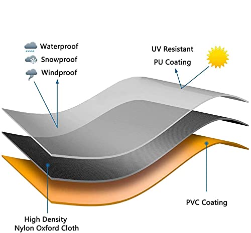 - 【غطاء أثاث الحديقة】مصنوع من قماش اوكسفورد متين، مقاوم للماء، مقاوم للأشعة فوق البنفسجية، مقاوم للتمزق ومقاوم للبهتان. تقي بشكل فعال مجموعة أثاث الحديقة الخاصة بك من الأضرار الناجمة عن المطر والعواصف والعواصف الثلجية والشمس والصقيع، وتحمي الأثاث من الغبار والرطوبة وفضلات الطيور وتحافظ على أريكة الفناء المفضلة لديك جافة وآمنة.