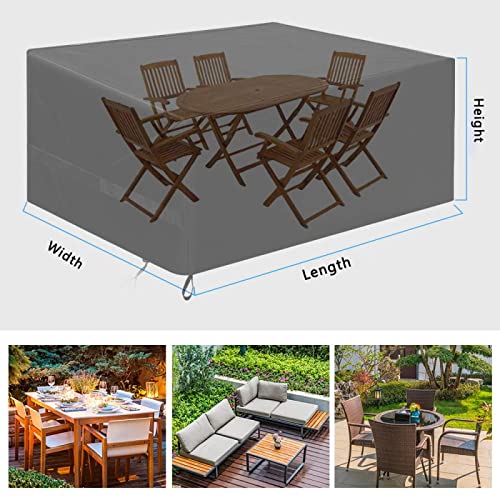 Leju Art - غطاء أثاث الحديقة مقاس 300 × 220 × 70 سم، مقاوم للماء، ضد الأشعة فوق البنفسجية، مقاوم للرياح والأشعة فوق البنفسجية، مقاوم للحرارة، بوليستر وقطن، 100%، غطاء طاولة حديقة، عبوة واحدة، من ليجو ارت، رمادي