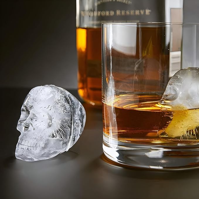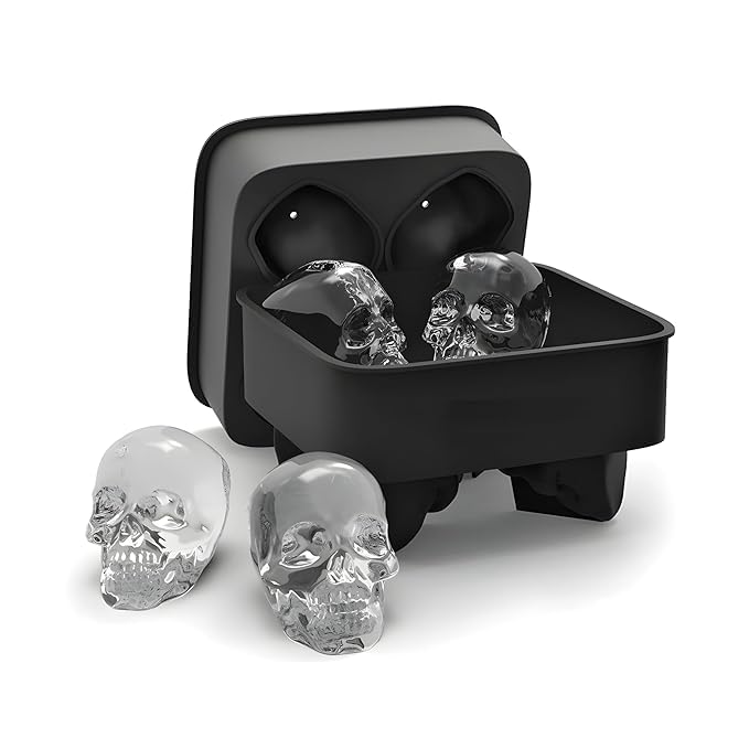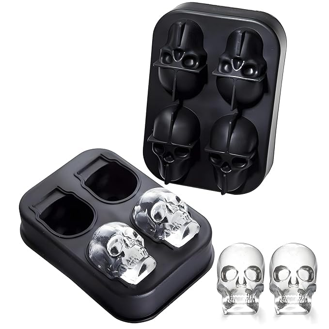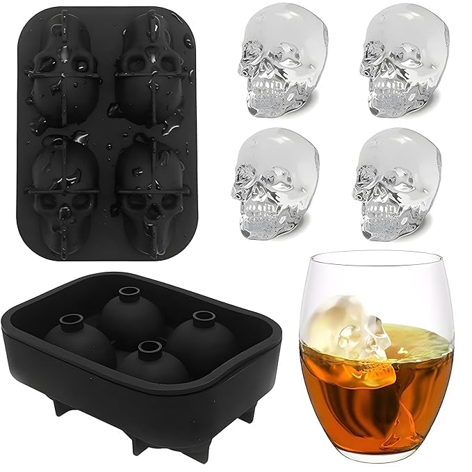 - 3D Skull Shape: The ice cube tray mold is designed to create four giant 3D skull-shaped ice cubes, adding a fun and quirky touch to your beverages. Perfect for parties, Halloween, or themed events!