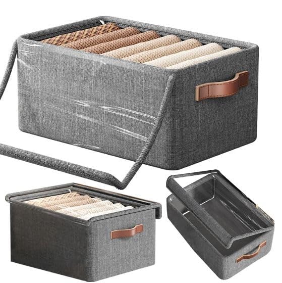 LEKORED - منظم ملابس فاخر قابل للغسل لخزانة الملابس مع مقبض قوي وغطاء شفاف، منظم خزانة مرئي قابل للطي لصندوق تخزين الملابس من ليكوريد، مجموعة من قطعة واحدة