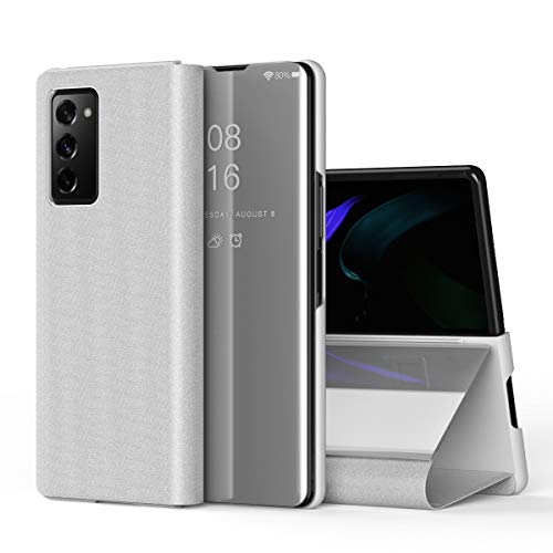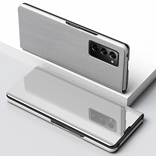 LEMAXELERS - LEMAXELERS Compatible with Galaxy S21 FE Case Slim Mirror Design Clear View Flip Bookstyle Ultra Slim Protecter Shell with Kickstand Protective Cover for Samsung Galaxy S21 FE Mirror PU PU Silver