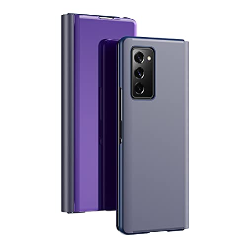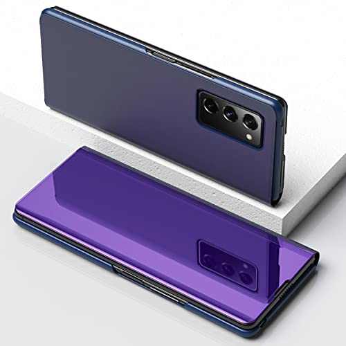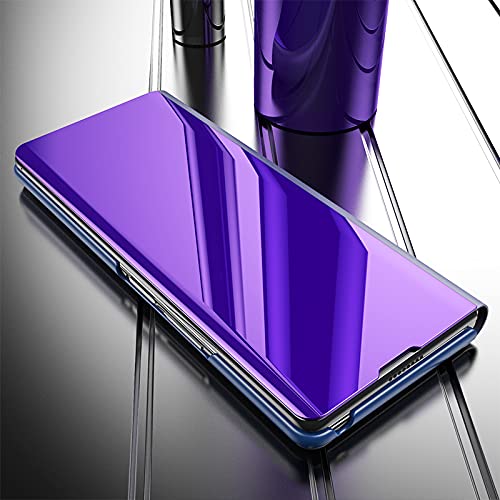 LEMAXELERS - جراب من بولي يوريثين بلاستيك كربونات ثيرموبلاستيك جلد صناعي سيليكون رفيع للغاية وبتصميم عاكس بتقنية كلير فيو لسامسونج جالاكسي S21 FE ارجواني بنفسجي S21، لسامسونج جالاكسي S21 FE