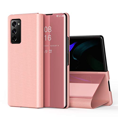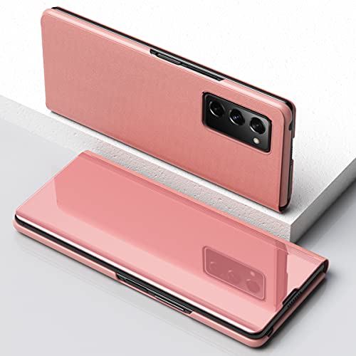 LEMAXELERS - LEMAXELERS Compatible with Galaxy S21 FE Case Slim Mirror Design Clear View Flip Bookstyle Ultra Slim Protecter Shell with Kickstand Protective Cover for Samsung Galaxy S21 FE Mirror PU Rose Gold