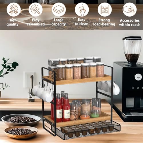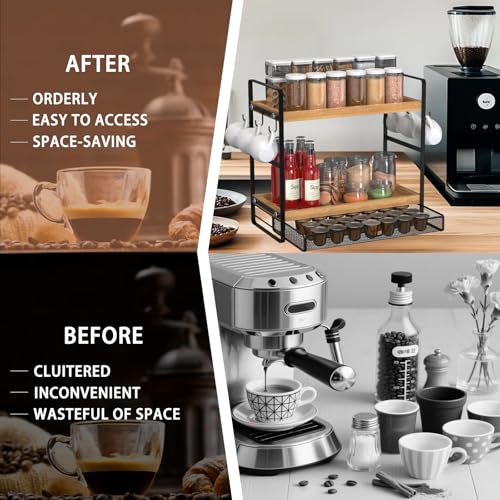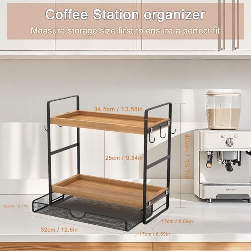 LEMIKKLE - LEMIKKLE 2-Tier Coffee Station Organizer with Pod Holder and Drawer, Kitchen Countertop Organizer, Coffee Bar Accessories Station with Coffee Pod Storage, Coffee Organizer