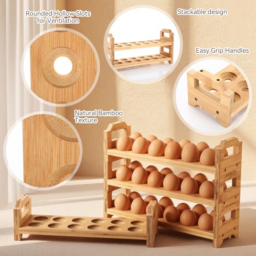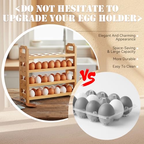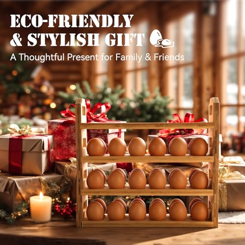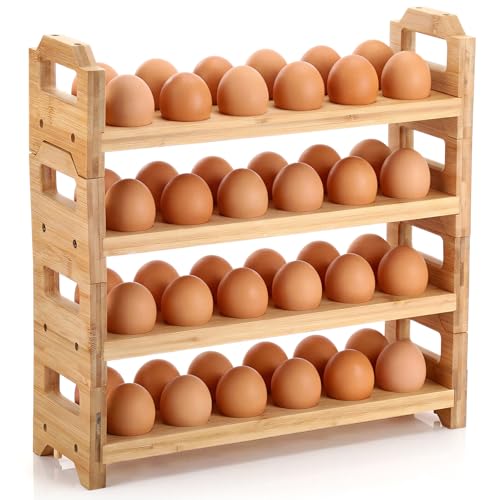 LemonRoad - LemonRoad 4 Tier Wooden Egg Holder for Countertop, Bamboo Stackable Fresh Egg Storage Farmhouse Collecting Rack for Gathering Kitchen Organizer Duck Eggs Display, Stackable with 48 Eggs