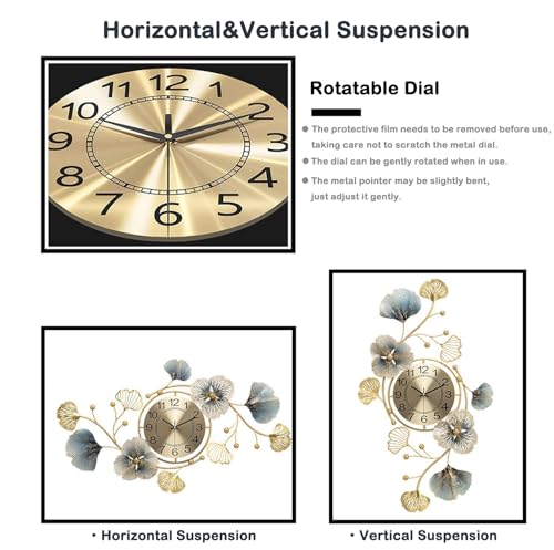 - 【ساعة حائط معدنية】: ديكور الحائط المعدني هذا جميل الشكل وألوان زاهية، ويتألف من لونين ذهبي وأزرق لامع، 83 × 48 سم/32 × 19 انش.