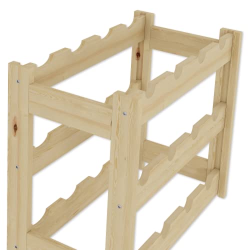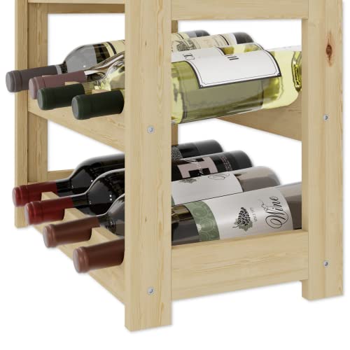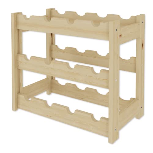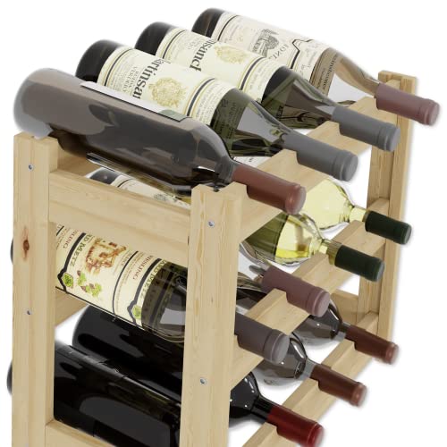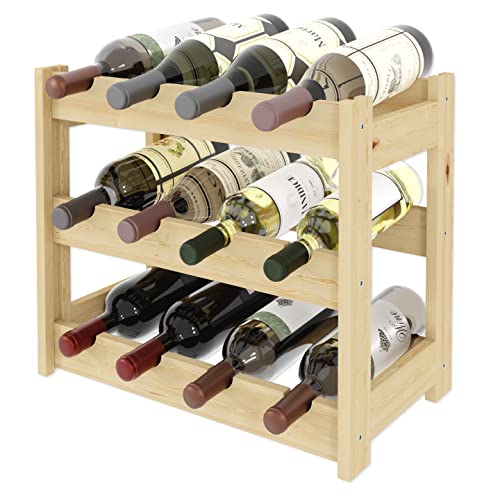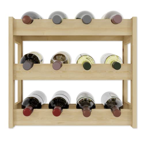 Lenmar - لينمار, رف خشبي للزجاجات، طبيعي، RW-1، رف زجاجات، رف قبو، ارفف، حامل زجاجات (طبيعي، RW-1-12، 38 × 43 × 25، 3 طبقات، يحمل 12 زجاجة)