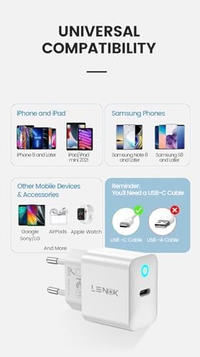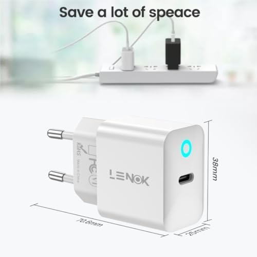 LENOK - شاحن من لينوك بتقنية USB، متوافق مع الهواتف الخلوية، بمنفذ واحد، 20 واط للشحن السريع