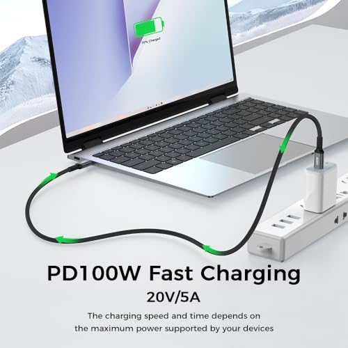 - 【شحن سريع 100 واط】: يدعم كابل USB نوع C من لينوك تقنية توصيل الطاقة 3.0 والشحن السريع 3.0، مما يوفر أقصى طاقة خرج تصل إلى 100 واط (20 فولت، 5 أمبير) وهو متوافق مع محولات توصيل الطاقة USB نوع C 100/65/60/45/20 وات. اشحن جهاز ماك بوك برو الخاص بك حتى 55% في 35 دقيقة فقط، مما يزيل القلق من انخفاض البطارية. *يرجى ملاحظة أن سرعة الشحن الفعلية تعتمد على جهازك وشاحن الحائط.