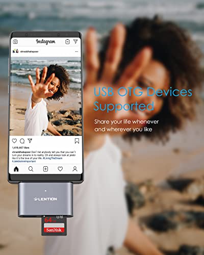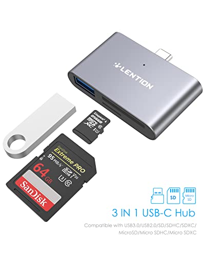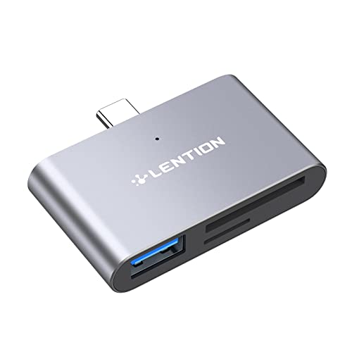 LENTION - قارئات بطاقة لينشن USB C الى USB 3.0 + SD / Micro SD متوافقة مع ماك بوك برو (ثندربولت 3)، 2020-2016 ايباد برو وماك اير الجديد، ماك بوك 12، كروم بوك، سيرفس بوك 2 / جو، المزيد (CS15، رمادي فضائي)