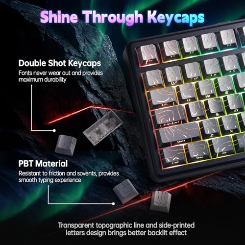 - Elevate every tap with the PBT keycaps of LEOBOG X Aula F75 MAX Gaming Keyboard – their texture resists shine and fingerprints while delivering cloud-like comfort. Side-legend printing ensures lasting visibility, paired with transparent topographic line and south-facing LEDs - shimmering hues radiate between keycaps while legends glow with crisp intensity