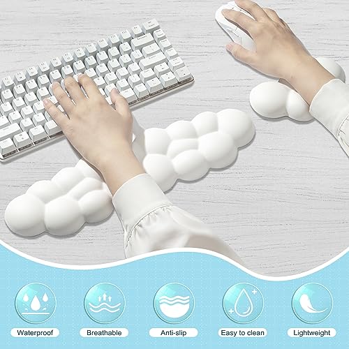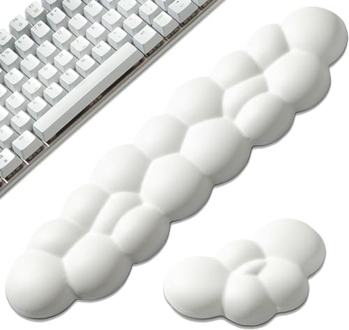 Leolee - مسند معصم بتصميم سحابة بيضاء للوحة المفاتيح والماوس مع سطح من الجلد وقاعدة مضادة للانزلاق لراحة اليد وتخفيف آلام المعصم والذراع للكمبيوتر والمكتب واللاب توب وممارسة الألعاب
