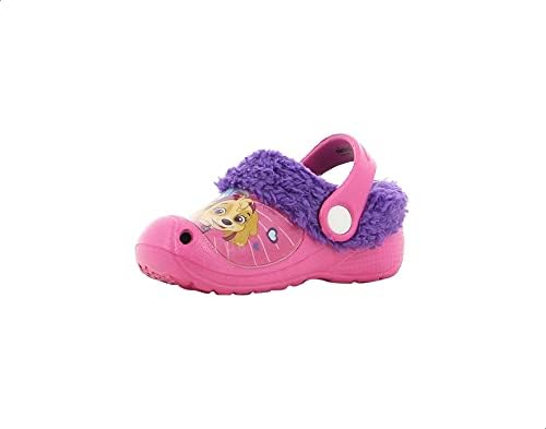 Leomil - Leomil Paw Patrol Print Strapped Faux Fur Lined Clog Sandals for Girls - Pink and Purple