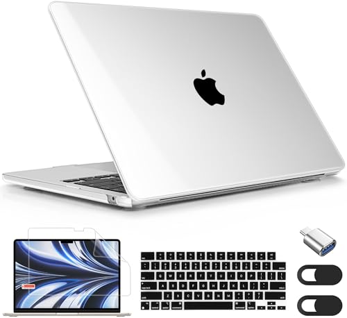 Lepeoac - for MacBook Air 13.6 Inch Case 2022 2023 2024 Release Model A2681 M2 A2331 M3 Chip, Plastic Hard Shell Cover with Keyboard Cover & Screen Protector & Type-C Adapter, Crystal Clear
