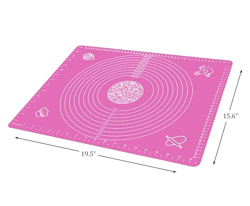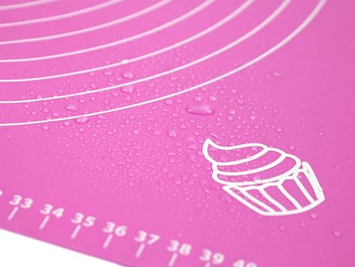 LEPLION - Silicone Baking Mat for Pastry Rolling Dough with Measurements, 40 x 50 cm Non stick and Non Slip Pink Table Sheet Baking Supplies for Bake Pizza Cake
