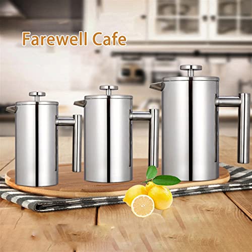 LEQURE - Coffee Machine Coffee pot Stainless steel espresso French coffee press Double insulated coffee pot (Color : Silver, Size : 1000ml)